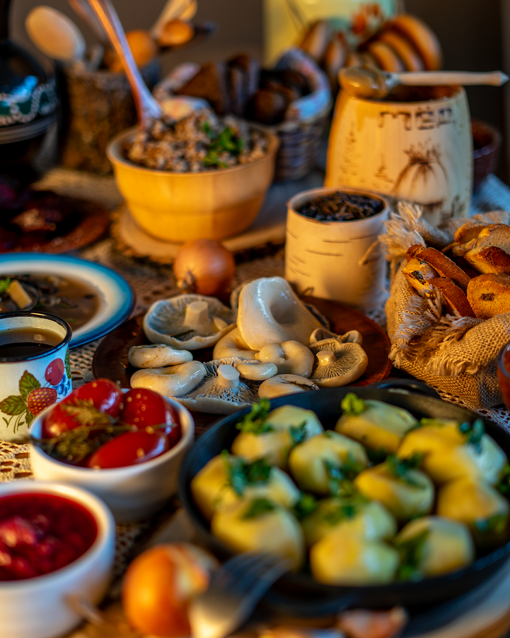 Щи будут с кислинкой, грибница тёмная да горошница в горшочке из печи. Гречка с грибами и луком обжаренная, опять же.