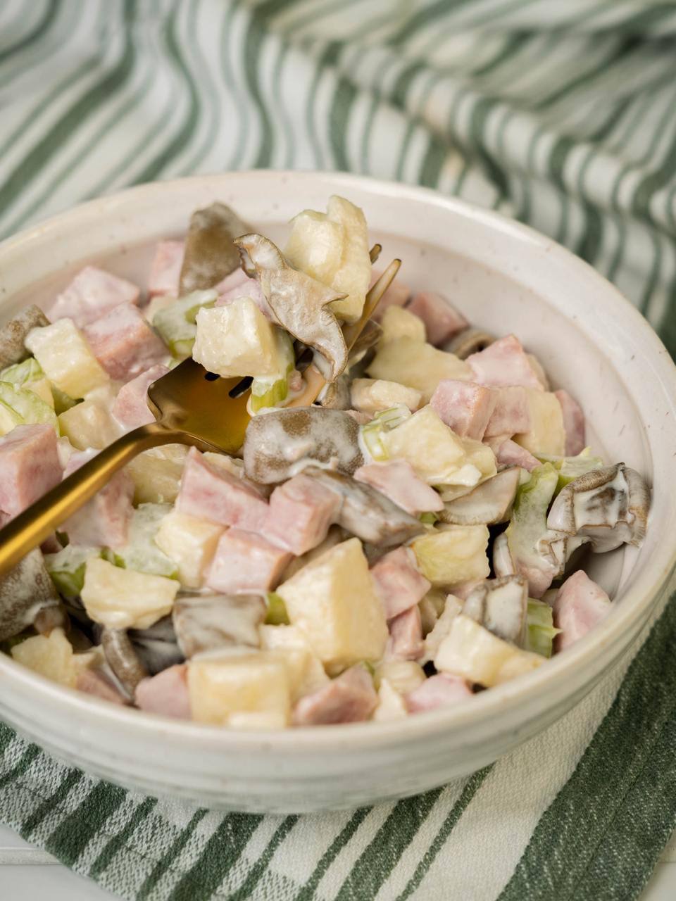 Всё измельчаем и смешиваем. Грибы солёные - соль не добавляли.
